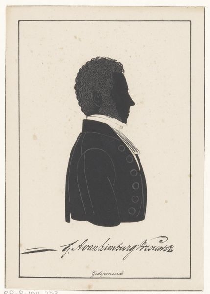 Curator: This piece, dating back to 1850, is titled "A young man, standing; full length silhouette, profile to right." It is attributed to W. H. Beaumont. Editor: Well, hello, Mr. Suave! He seems so serious. I wonder what grand ideas fill his head as he gazes into the distance. The composition makes me feel like he's on the verge of embarking on a great journey, though his expression gives the impression of slight melancholic self-reflection. Curator: Crafted with watercolour, pencil, and print on paper, it speaks to the means of production during that period. It's a fusion of artistic skill and reproducible technology. Silhouette portraits were quite popular as a cheaper alternative to painted portraits for the rising middle class. Editor: Fascinating. It feels almost timeless, a study in the simplicity of form. I imagine the sitter fidgeting impatiently while Beaumont sketches, his mind elsewhere perhaps on love or longing or a really important business deal, don't you think? Curator: It could certainly reflect on the social mobility of the time as well. We should also take note of the specific paper and the way the printing process allowed Beaumont to create multiple images. It's a perfect demonstration of art democratisation in mid-19th-century Europe. The question isn't so much about portraying aristocracy here, but more about serving emerging patrons who need more efficient methods of displaying their societal worth through portraiture. Editor: True, and the figure seems so neatly rendered and clean in its shape. I imagine those techniques also added this distinctive layer of seriousness which can’t be felt as much when looking at, say, impressionistic works. There is certainly some subtle message sent through the paper, watercolour, print work and carefully planned composition. It certainly invites introspection. Curator: Indeed. When we explore "A young man, standing," we delve into not just the portraiture but the mechanics of image creation and consumption in 1850. Editor: For me, I glimpse a quiet moment suspended, rendered with exquisite artistry—it makes me want to learn what this silhouette once represented.