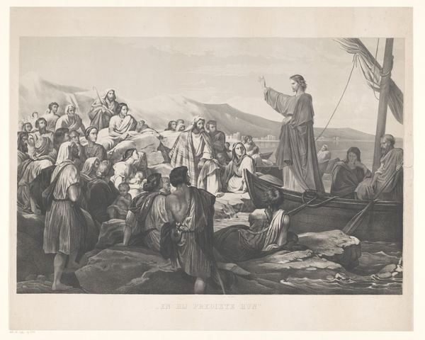 Editor: So, here we have Karl Bodmer’s "Scalp Dance of the Minatarres" from 1843. It's a print, watercolour, and charcoal piece, and it strikes me as… strangely serene, despite the subject matter. How should we approach interpreting this? Curator: Serene, huh? An interesting take! For me, the somewhat muted palette juxtaposed with the lively scene evokes a sense of observation, almost voyeuristic. What stands out isn't the violence itself, but the performance of it, documented. Have you noticed the individual expressions and gestures? Each figure, though part of the crowd, seems to hold a specific role in this cultural practice. It feels, perhaps, a little like theatre. Editor: I see what you mean about the performance aspect. There’s a formality, even. Is that intentional on Bodmer's part, or is it a product of his perspective as an outsider? Curator: Ah, that’s the core of it, isn’t it? Bodmer, as a European artist, undeniably brings his own baggage to the depiction. It's a record but also a creation. The challenge lies in acknowledging the historical context while understanding the human element present. Were we there with him, would the feeling be the same? Would there be space to interpret serenity? Editor: That’s a really helpful point. I guess I was focusing on the composition, the way the figures are arranged, the open landscape. But I was missing that layer of interpretation from Bodmer himself. Curator: Exactly! It’s a dance between observation, documentation, and personal understanding, which is really what art boils down to, isn't it? It's exciting, this piece! Editor: Absolutely, I will never look at it the same way again. Thanks!