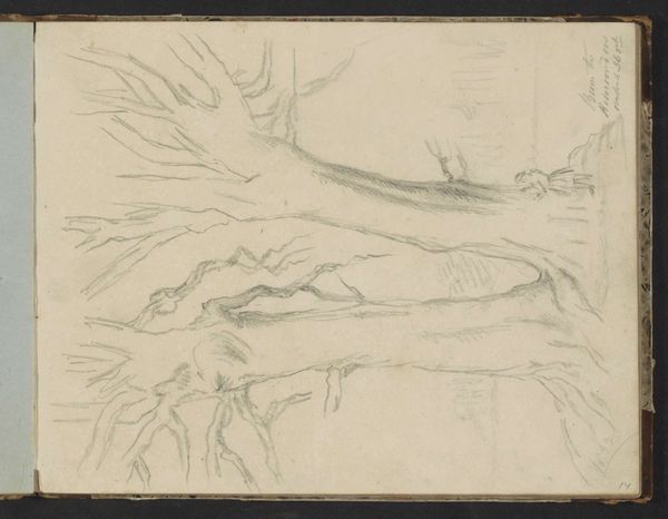 Niels Larsen Stevns created this pencil drawing, "Tree Studies and Birds," sometime between the late 19th and early 20th centuries, a period of significant change in Danish art and society. Stevns, deeply rooted in the cultural and intellectual milieu of his time, engages here with themes of nature and observation. During this time, artists explored national identity, often turning to nature for inspiration. This sketch reflects a particular kind of quiet attentiveness, a gentle observation that diverges from more grandiose artistic statements. The quick, soft lines capture a fleeting moment in nature, emphasizing the artist's personal connection to the landscape, offering an intimate view into the artist's process and the quiet beauty he found in the natural world. This work may be read as a response to the industrialized world. It evokes a sense of longing for a simpler, more harmonious existence. It invites us to consider the ways in which we perceive and interact with our surroundings.