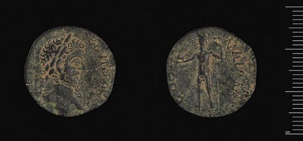 Curator: There's a stark beauty to this coin. It's attributed to Mithradates VI Eupator, hailing from Amisos in Pontos. Editor: It feels weighty, not just physically, but in the density of its symbols. The central face surrounded by what looks like stylized sun rays or petals…it radiates power, doesn't it? Curator: Absolutely. The imagery speaks volumes about Mithradates' ambition. Coins were, after all, potent tools of propaganda. The figure on the other side is, I believe, an idealized rendering of the king as a military leader. Editor: These symbols must have resonated deeply with the people of Pontos. The face, encircled by the sun, hints at divinity, or at least, a ruler blessed by the gods. It's a very deliberate construction of power. Curator: Indeed, and the coin itself is a testament to the economic and political landscape of the time, reflecting Mithradates' efforts to consolidate his power. Editor: It makes you wonder about the hands it passed through, the stories it could tell. This little object is such a powerful window into a distant world.