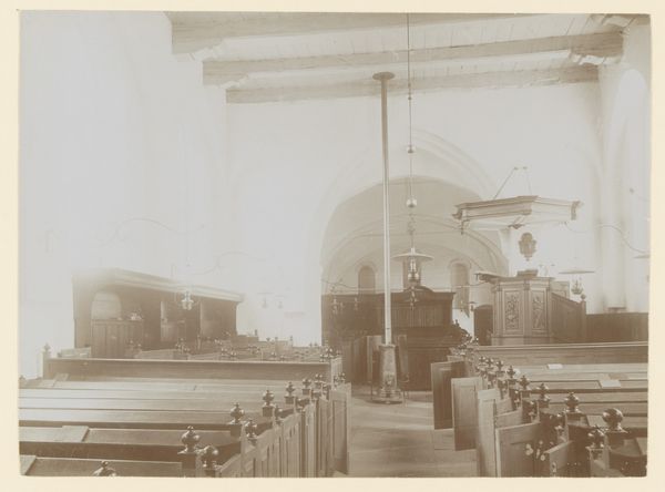This photo of the Nederlands Hervormde Kerk was taken by Leonard Vlaanderen with a camera some time ago. I love the way this image uses light and shadow to create such a serene atmosphere; the subdued sepia tones add a kind of timeless quality. Look at how the light streams through the high arched windows, softening the hard edges of the interior architecture. The chairs, lined up in neat rows, almost seem to be waiting patiently, and it makes you think about what it means to be in such a formal space and all the communal events that have taken place there. The composition feels so carefully constructed; it's as if Vlaanderen wanted to capture not just the space, but also its sense of stillness, and maybe the memory of all its past uses as well. It reminds me a little bit of some of the architectural studies of the Bechers, but with a much warmer, human feel. Ultimately, it's a photograph that asks us to consider the stories that spaces hold, and how they shape our experiences within them.