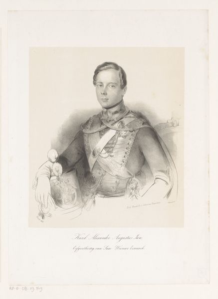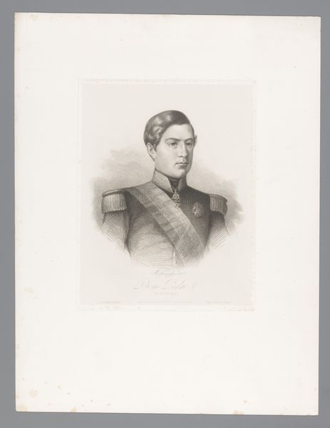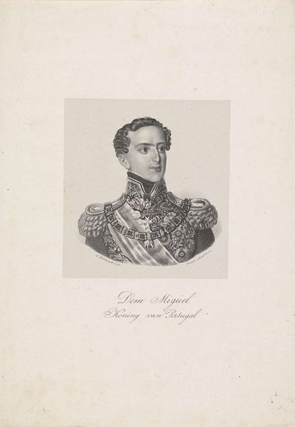 This is Franz Xaver Stöber's portrait of Dom Miguel, King of Portugal. With the print, we are immediately thrust into the political complexities of 19th-century Europe. Dom Miguel’s story is a fascinating one of power, exile, and shifting alliances. His reign was marked by conservative policies and conflicts over constitutionalism, reflecting the broader tensions of a continent grappling with revolutionary ideas. Born into royalty, Miguel's life was defined by the turmoil of his time, as he navigated a world of political upheaval and ideological clashes. Consider how the artist Stöber, chose to portray the King. What aspects of Miguel’s identity are emphasized? Does this image present him as a progressive leader or a staunch traditionalist? Think about how portraits like this were used to shape public perception and legitimize power. It is a glimpse into a world of kings and kingdoms, where the personal and political were deeply intertwined.