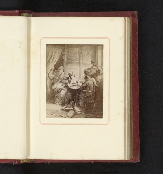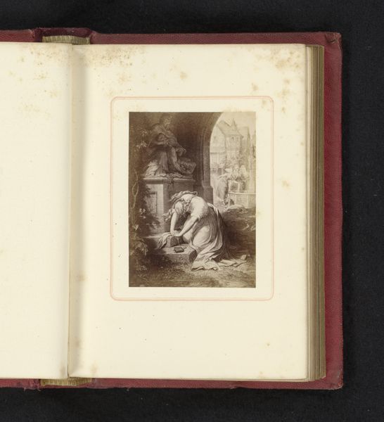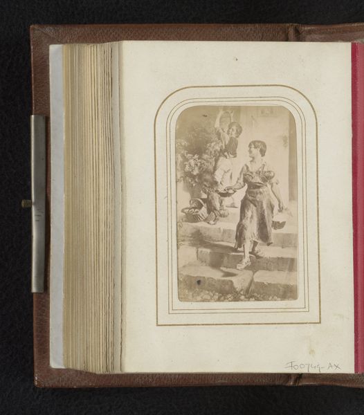 This photograph reproduces a print after Correggio’s Adoration of the Child and it resides in an album. We might consider this image as part of the 19th-century phenomenon of art collecting and the development of photography as a reproductive technology. The image is not the original work of art, but rather a copy. During this period, art institutions such as museums and galleries were becoming more prominent. Photography allowed for wider access to art, as people could now own images of famous works. It democratized art but also changed its social function. Religious scenes like this were very popular subjects. The original painting would have been commissioned by a wealthy patron for a church or private collection. The photograph, on the other hand, circulates within a different economy of images. It is a commodity that can be bought and sold. To understand this photograph, we might research the history of photography, the art market in the 19th century, and the role of reproduction in shaping our understanding of art.
