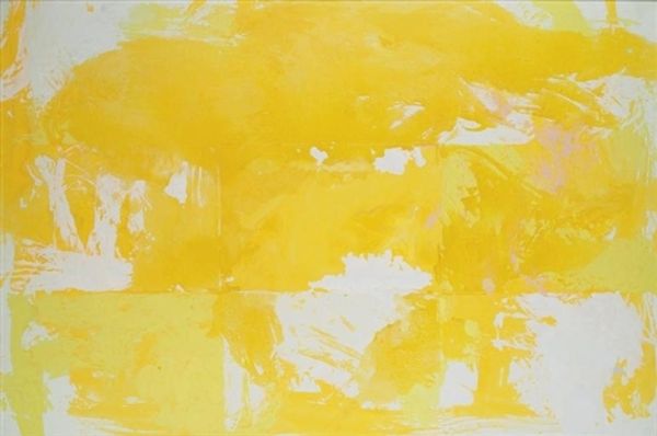 This untitled piece was created by Sam Francis, featuring dynamic forms in shades of yellow that dance across the canvas. The color yellow has always been a potent symbol, evoking feelings of warmth, optimism, and enlightenment. Think of the golden halos in Byzantine mosaics, symbolizing divine radiance, or the sun god Ra in ancient Egyptian art, representing life and vitality. Yet, yellow also carries connotations of caution, illness, and decay. It can signal the transience of life, much like the fading leaves of autumn. In this painting, the fluid, almost ethereal quality of the yellow shapes suggests both a vibrant energy and a fleeting presence. Francis taps into our collective memory, stirring deep-seated emotions associated with this powerful color. It’s as if the painting acts as a mirror, reflecting our own complex relationship with the world and the transient nature of existence. The cyclical progression of joy and melancholy.