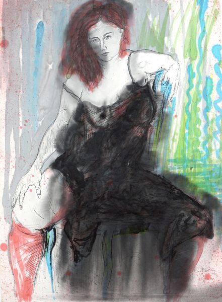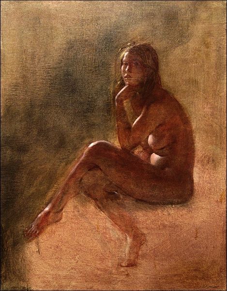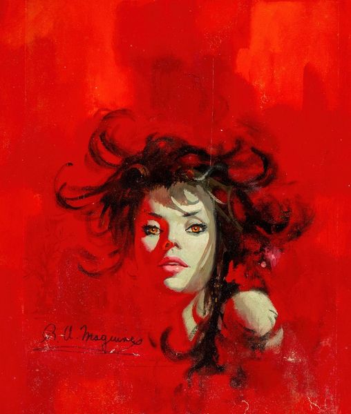 Curator: This is Frank Mason’s "Spanish Dancer," created in 1984 using oil paint. It's a captivating example of neo-expressionism, very popular in that period. Editor: Neo-expressionism. Well, immediately I sense that swirling chaos of the brushstrokes, like trying to catch a memory as it fades. It makes me think of raw emotion. A dance happening inside rather than outside, you know? Curator: Exactly! And Mason's placement of this work within neo-expressionism emphasizes a return to figuration and emotion. Post-modernism opened the doors for that subjectivity. Look how portrait art is infused with personal intensity. It's far away from the conceptual art that dominated a bit before. Editor: Right! I feel a visceral reaction—there is something urgent about the colours, about how she turns her face. It makes me imagine her listening to a far-off drumbeat, almost daring herself to leap into something uncertain. I'm wondering about that title… "Spanish Dancer"—is it a cultural allusion, a literal observation, or maybe just an excuse for that amazing flamenco red? Curator: Perhaps a nod to tradition. Neo-expressionism, especially in portraiture, sometimes challenged established power structures, reclaiming individual and cultural narratives from a historical vacuum. The neo-expressionist movement really questioned ideas of high and low art. This is the context within which he may be creating an ideal, powerful image. Editor: Interesting... so we can see this artist playing in between cultural themes, and an almost desperate need for immediate, uncensored feeling. And the dancer, if it is about that, feels caught, maybe. It is dark and troubled as it’s lit up in warm hues, both confident and extremely vulnerable. Almost like that flamenco *duende*. Curator: A beautiful articulation of what you feel when you look at the artist and his subject at the same time! That helps to better see it in its period, and what may be universal beyond it. Editor: Yeah. To look beyond. Thank you, always a learning. Curator: Likewise!