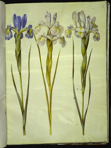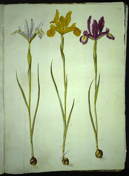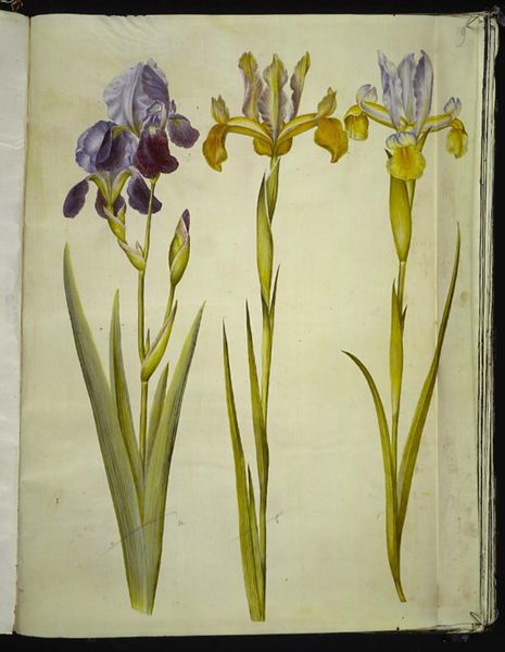 Hans Simon Holtzbecker made this watercolor of three irises on vellum in the mid-17th century. The realism suggests that this was created as part of a botanical survey; an effort to record and classify plant life. Such classification projects, advanced through the institutional support of universities and royal gardens, became a vital part of the scientific revolution. The iris was a popular subject in such surveys, and it would have appealed to Holtzbecker as a test of his technical skill. Note the variations in color and form. These would have made the iris an ideal way for him to demonstrate his ability to record subtle differences in the natural world. As historians of science and art, we can look to these images for clues about the shifting relationship between art, science, and power in the early modern period. Who commissioned them, and for what purpose? The answers help us to understand the social and intellectual networks in which they were produced.