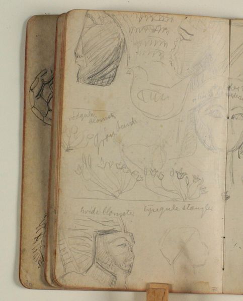 Curator: Here we have "Skitse af Majestas Domini (efter kalkmaleri?), med farveangivelser," a pencil drawing on paper by Niels Larsen Stevns, created sometime between 1906 and 1910. It’s currently held at the SMK - Statens Museum for Kunst. My immediate reaction is how delicate it appears, like a whispered prayer captured in lines. Editor: It’s intriguing, seeing the artist’s process so bare. The sketch quality allows one to study the construction, or reconstruction really, of the original fresco as artifact of medieval image making and visual communication. Note the materiality; pencil on paper provides a direct link to the hand and thought of the artist. Curator: Absolutely, and the medieval theme certainly amplifies the effect of direct access. Stevns clearly aimed to capture not just the visual likeness of the Majestas Domini, but something of its spiritual gravity, even in this preliminary form. I almost feel a resonance with the past here. What are your impressions on this? Editor: This resonates for me not with spirituality, but labour. This isn’t some purely creative outburst; it’s a working document, a translation from monumental wall painting to portable sketch. The added color indications further underscore that labor; instructions guiding a subsequent application of materials. The work provides access to both original artistic intention and the practical considerations needed to realize large scale pieces. Curator: I see that completely – instructions layered over intuition – fascinating. Thinking of process and labor then, the sketch gives insight into Niels Stevns’ own encounter with the medieval style, he adopts its stylistic devices, then, perhaps later integrates those forms into his later, original, works. What do you take away as final thought on the piece? Editor: I’m struck again by the tangible sense of artistic production; how the work invites critical questioning of the art making, especially craft traditions often relegated from a more individual, art making realm. Curator: For me, it's the combination of the raw and the refined. It captures a dialogue across time and traditions, from the monumental medieval artistry of fresco paintings to this one artist sitting with pencil in hand translating color, shape, and meaning into a new visual iteration.