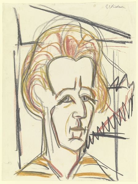 Curator: Here we have Ernst Ludwig Kirchner’s 1924 drypoint print, "Portrait of Dr. Redslob," currently housed at the Minneapolis Institute of Art. What strikes you first? Editor: An undeniable agitation, despite the man's attempt at composure. The lines are frantic, the face almost collapsing in on itself. Curator: Expressionism lends itself to such emotive portrayals, doesn’t it? Kirchner, steeped in the movement, employed sharp, angular lines to reflect internal states, not just external appearances. Editor: Precisely. The hurried marks seem to be digging into the surface as if scratching out the subject's soul. The background is sparse yet unsettling—those ambiguous vertical marks. Do they represent trees, or bars? Curator: Perhaps a bit of both? Trees often represent nature, freedom. But look closer—they could resemble palisades, conveying a sense of psychological confinement. Kirchner’s Expressionist vocabulary utilizes this very symbolism to showcase the inner turmoil or mental distress of the depicted sitter, don’t you think? Editor: I concede, yet it doesn't scream angst as overtly as some other expressionist pieces. The good doctor sports a bow tie! He looks somewhat composed, proper, even. There's a peculiar tension between his effort to be presentable and the raw lines suggesting otherwise. Curator: A tension that perhaps captures the conflicting pressures of post-war German society, wouldn't you say? A desire to rebuild while grappling with the psychological scars of conflict. His is a professional portrait meant to project authority; yet the emotional undercurrents hint at fragility. Editor: An interesting duality captured masterfully through the drypoint technique. Those burrs catching the ink creating a kind of vibrating, nervous energy that permeates the entire print. Curator: Indeed. It's a compelling visual record, showing us not just what Dr. Redslob looked like, but how he felt. Editor: Yes, a formal, yet honest, portrait—where line and composition carry as much meaning as the subject's visage. Curator: An incisive visual analysis! Editor: Glad to oblige!