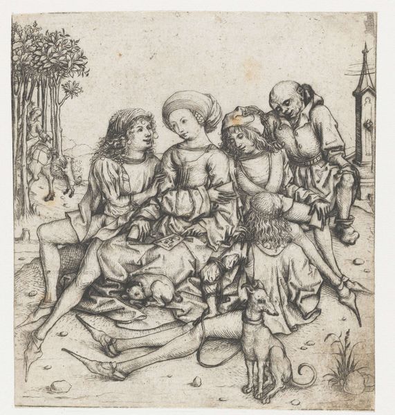 Jacques Dassonville created this etching, “Tafereel met gemaskerde jongen en roede,” sometime in the mid-17th century. The image shows a group of figures gathered outside a humble dwelling. One child is being threatened with a rod by a masked figure. Dassonville was a Flemish artist working in Antwerp, then part of the Spanish Netherlands, a region with a rich tradition of genre painting depicting scenes of everyday life. These images often carried moralizing messages reflecting the social norms of the time. The rod and mask suggest a commentary on the social structure and education of children, common themes in the art of that period. The setting further hints at the rural poverty experienced by much of the population. To fully understand this work, one might research the history of education and social customs in the 17th-century Spanish Netherlands, consulting period documents, literature, and other visual sources to shed light on the cultural context that shaped both the artwork and its audience.