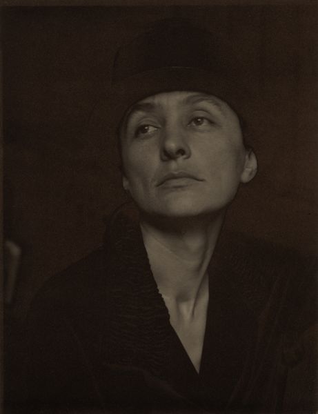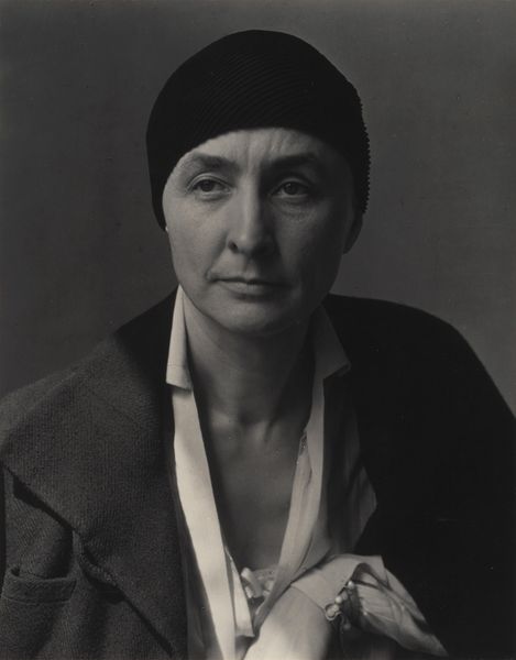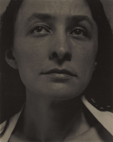 Alfred Stieglitz captured this photograph of Georgia O'Keeffe using gelatin silver. Stieglitz was instrumental in promoting photography as a fine art in the early 20th century, challenging the traditional art establishment's preference for painting and sculpture. As the founder of the Photo-Secession movement and Gallery 291, he championed avant-garde art and artists, including O'Keeffe, whom he later married. This portrait is part of a larger series that documented O'Keeffe over many years, reflecting Stieglitz's belief in the power of photography to capture the essence of a subject. The image invites viewers to contemplate the role of gender in the art world, with O'Keeffe presented as both muse and artist. The image speaks to the evolving status of women in the arts during a period of significant social change. To delve deeper, explore the archives of Gallery 291, and consider the writings of art critics who debated the merits of photography as an art form. These resources can offer insights into the social and institutional contexts that shaped both Stieglitz's work and O'Keeffe's reception.