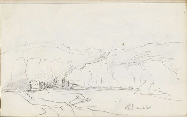 Curator: This is "Near St. Stephens, New Brunswick, Canada," a watercolor and ink drawing created in 1951 by John Marin. Editor: It feels like a quickly captured impression. The colors are so light, almost transparent. Like a fleeting memory of a place. Curator: Marin often sought to capture the energy of a place, that's right. His application of loose washes, combined with the more decisive lines of ink, give it that sense of immediacy. The abstract lines also hold great symbolism for him, to represent hidden movement and energy found in nature. Editor: I'm drawn to the raw, sketch-like quality of it. You can almost see the artist working, wrestling with the landscape. The visible spiral binding hints at this being a page from a sketchbook, emphasizing the work as a material artifact of the artistic process. Curator: Indeed. It gives it an almost diary-like intimacy. His deliberate arrangement of lines and shapes hints at his broader interest in capturing a more lasting truth about this location. Editor: I am interested to what kind of inks he used. The tones go from greys to deep brown shades and how each is captured on the absorbent ground of the paper. And how those bleed into the soft application of watercolor. Curator: You are speaking to a great synergy that he created. His conscious choice of simple materials like ink and watercolor over something grander speaks to the inherent beauty he found within this natural landscape, the core symbolism. Editor: And how this ties back into ideas of production and making. There's no pretense, the whole sketchbook on display as the final work of art itself. The direct process really becomes part of the artistic statement. Curator: A visual encapsulation of time and memory, filtered through the artist's sensibility and raw materials, it has many qualities to it. Editor: It makes you appreciate the skill in capturing so much essence with seemingly so little effort, and with so few tools. It leaves you wanting to witness what is beyond those simple layers of color.