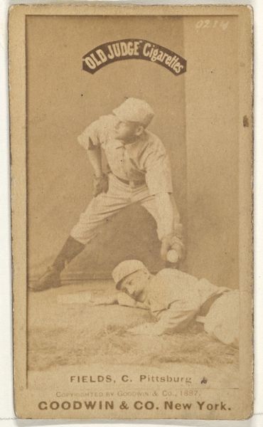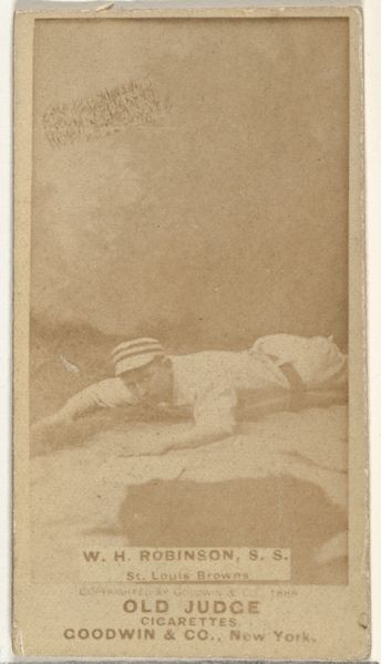 This baseball card, a photographic print for Old Judge Cigarettes, captures a fleeting moment on the field. At its heart lies the ambiguous gesture of the standing baseball player, arm raised. Is he about to strike, or is he celebrating? Such a gesture echoes through time, from ancient depictions of victorious warriors to religious iconography of divine intervention. Think of the raised hand of a Roman emperor, a symbol of power and command, or the benevolent hand of a deity bestowing blessings. Here, in the late 19th century, this primal gesture has been secularized, democratized. The baseball field becomes a new arena for the playing out of ancient dramas of victory and defeat. The tension, the anticipation, embedded in this seemingly simple scene, engages us on a subconscious level. It speaks to our collective memories, our primal instincts. It’s a reminder that even in the modern world, the echoes of the past resonate, shaping our perceptions and emotions.
