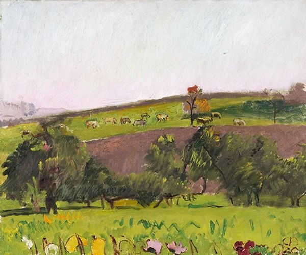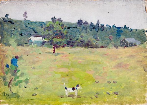 Editor: This is "In der Savanne Ostafrikas" by Wilhelm Kuhnert, painted in 1905, using oil paints. The African savanna is very inviting, I feel at peace just gazing at this canvas. What do you see in this piece? Curator: The key symbol that captures my attention is, undeniably, the tree, solid in the foreground. Consider the ancient reverence for trees across cultures, often seen as connections between the earthly and spiritual realms. It grounds the viewer, offering a sense of stability, almost an invitation to consider a deeper understanding. Editor: I see what you mean! The tree does give me that kind of deep feeling, but also that the land behind is also a vital element? Curator: Indeed. Landscape itself acts as a symbol. What does "savanna" evoke for you, if you allow associations to arise from within? Editor: I think the savanna shows how wild nature endures and holds the place of memory, especially colonial memory since this was painted in 1905? Curator: Yes, that memory is right at the heart of it! The gaze drifts further into the painting, where the presence of a solitary antelope hints at the region's abundant wildlife. But that antelope is also quite small in relation to the land and vegetation. How might that proportion make you reflect upon our relationship with nature? Editor: It shows nature as greater than ourselves; so grand and imposing! And us being visitors, small figures within it. I hadn't really thought of that initially. Thank you. Curator: Exactly. And that feeling reflects a very old connection. Perhaps an old reverence is returning in these new images.