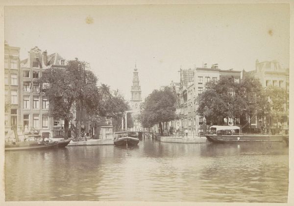 Andries Jager made this photograph of the Amstel Hotel with boatmen in the foreground sometime in the 19th century. The photograph’s composition arranges the imposing structure of the Amstel Hotel along the horizon, a testament to architectural ambition. Notice how the building’s facade is softened by the tonal range of the photograph, creating an interplay between the monumental and the intimate. The surface of the Amstel river mirrors the hotel, binding the architectural with its watery reflection, further activated by the figures in the foreground. Considering the semiotic structure, the hotel acts as a signifier of luxury and modernity, sharply contrasted by the boatmen who embody labour and tradition. This juxtaposition isn't just a visual element; it suggests a deeper dialogue about societal progress. The linear perspective leads the viewer's eye from the activity on the river towards the static grandeur of the hotel, asking us to consider the relationship between these contrasting worlds. Ultimately, it's the photograph's ability to capture this tension that lends it significance, inviting viewers to engage with its complex cultural narrative.