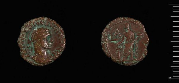Editor: Here we have a tetradrachm of Alexandria under Diocletian, currently housed in the Harvard Art Museums. It's incredible to hold something like this and think about the hands it passed through! What can we understand about its making and use? Curator: Consider the materiality – this coin, likely a copper alloy, speaks volumes about resource access and control under Diocletian. Who mined the metal, who struck the coin, and what does its distribution tell us about trade and power dynamics in Roman Egypt? Editor: So it's not just about the image of Diocletian, but the entire production process? Curator: Precisely. The coin’s value wasn't solely symbolic; it represented labor, resources, and the complex economic system that sustained the Roman Empire. Its wear and tear even tells a story. Editor: That really shifts my perspective. It's amazing how much history is embedded in this small object. Curator: Indeed. By examining its materials and production, we gain insight into the lives of those who made, used, and valued it.