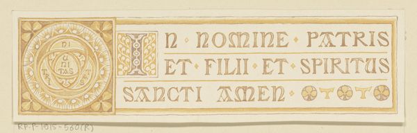 Antoon Derkinderen created this artwork, "Credo in unum Deum," using pen and brush in brown ink and watercolour. The phrase, meaning "I believe in one God", is carefully laid out in a horizontal band. Each letter is stylized, framed within individual squares that create a repetitive rhythm across the artwork. The decorative elements, such as the floral motifs within the letters, suggest a blending of the sacred with the aesthetic. This design choice destabilizes a clear distinction between religious text and artistic expression. Look at the interplay between line and color, with the subtle tonal variations giving depth to what could have been a flat design. The composition isn't just about conveying a religious message; it's about how the message is constructed, presented, and, ultimately, interpreted. The artwork's semiotic structure uses culturally recognized symbols and visual language to invite ongoing dialogue.
