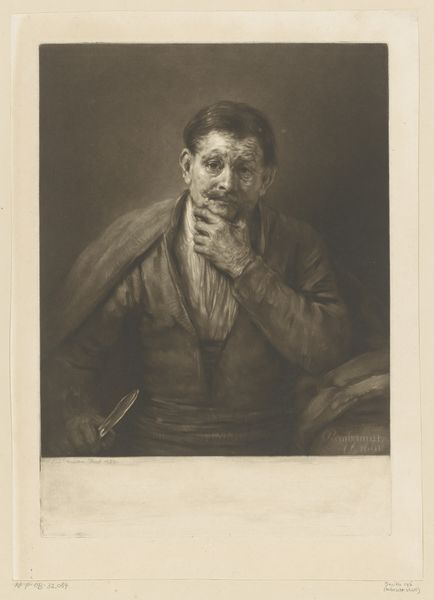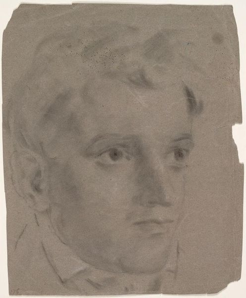 Editor: So, this is "Portret van Hein Boeken" by Willem Witsen, created around 1891. It's a pencil and charcoal drawing on paper and it's currently housed in the Rijksmuseum. There is a gentleness to the expression of the figure and the composition that strikes me right away, almost melancholic in a way. What do you see in this piece? Curator: Melancholy...yes, but isn’t there also a tenderness there? A quiet observation? You know, I'm reminded of late afternoons in my grandfather's attic – dust motes dancing in the weak sunlight, old letters tied with faded ribbon…This drawing has that same evocative quality for me. See how Witsen uses delicate lines, almost like whispers, to define the sitter's face? The contrast with the bolder strokes defining the suit, the crispness of the bowtie -- it brings Hein Boeken to life as though we have caught a glimpse of him unawares, just as the camera can also reveal those sides. Does this speak to you? Editor: Definitely. I notice how the subject fills most of the frame, yet there's a kind of intimacy in the artist's depiction that shrinks the distance. It makes me curious about the person represented. Curator: Exactly! It's as if Witsen sought to capture the essence of Hein Boeken, not just a likeness. Consider the context: this was the era of Impressionism, a move towards capturing fleeting moments, personal experiences. How does that context play out in the portrait, do you think? I imagine these two, friends maybe? Chatting intently as the day drifts. What details of the drawing might tell of such intimacy? Editor: The small detail of what may be an unfinished or erased initial on the bowtie and the soft smudging gives it all a more familiar effect... Almost like memory. Curator: Nicely said. Perhaps it's the immediacy, the vulnerability even, that resonates so strongly across the centuries. I feel strangely connected, almost like I know Boeken a bit. Editor: Me too. I went from simply observing a portrait to feeling like I’ve encountered someone. Curator: Yes, that's what happens, in Art, the deeper you look, the deeper the connection.