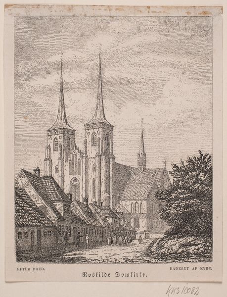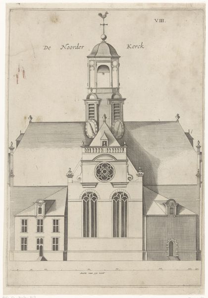 Editor: This is Jan Ekels' "De kerk te Buren," from 1728. It looks to be primarily done in pen and ink and pencil on paper. It's aged beautifully, with the paper giving off this gorgeous, warm tone. What draws my eye is the level of detail used to render the church versus the very basic figures in the foreground. How do you see this drawing? Curator: I notice the prominent rendering of architecture set against those figures. Ekels emphasizes the constructed, permanent nature of the church as a physical building but seemingly neglects the ephemeral human presence nearby. We must think about who commissioned works like this and their relationship to labor. Editor: What do you mean about labor? Curator: Consider the social context: who benefits from portraying grand structures, and who carries the actual weight in constructing and maintaining these spaces? Is Ekels commenting on social stratification in Dutch society here? The meticulous detail in the church versus the sketchiness of the figures—is that a deliberate choice to elevate the institution over the individual? Editor: So, the rough treatment of the human figures isn't a lack of skill, but a conscious decision rooted in social commentary? Curator: Exactly! Ekels uses the drawing materials - ink and paper - to underscore a visual hierarchy that was inherent to Dutch society at that time. It is, in essence, the "material" inequality becoming apparent in art, through Ekels’ labor and craftsmanship. Editor: I never thought about the "means of representation" that way before. Now I'm wondering how labor plays a role in other pieces of art! Curator: Thinking about art through production methods and social contexts helps us see how even simple materials contribute to grand, complex narratives.
