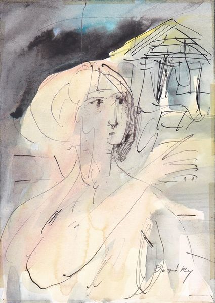 Maria Bozoky made this small watercolor and ink work, 'Rilke: Duino Elegies', with a deft and almost nervous touch. It's all about process, I think, a kind of searching. The color is muted, gray-blues washing over the paper, punctuated by stark blacks at the top. The figure emerges from this mist of color, a face framed by a veil, rendered in delicate, tentative lines. Look closely, and you'll see the ink isn't just black; there are threads of blue and green that weave through the composition, adding a subtle vibrancy. The wash is so transparent, and this is so quick that it feels like a mood as much as an image. The way she used the materials reminds me of Cy Twombly; that loose, scribbled line, the sense of something emerging, half-formed. In the end, I guess art is just an ongoing conversation, an echo of ideas across time.