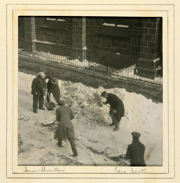 Editor: This gelatin-silver print, “Park benches in snow, Paris” by Robert Frank, taken in 1951, evokes such a stark and lonely feeling, don't you think? What is it about this composition that speaks to you? Curator: I'm drawn to how Frank highlights the industrial nature of city life intruding even on a seemingly natural scene. Look at the repetitive manufactured forms of the benches and the railings. How do these elements interact with the natural landscape, and what statement is Frank making about post-war European society through these juxtapositions of material and place? Editor: That's an interesting perspective! I hadn't really considered the industrial aspect, but focusing on the materiality definitely brings it to the forefront. The benches, though simple, are clearly products of mass production. Curator: Exactly! Think about the societal context. 1951 was a period of reconstruction and increased industrial output. The photograph subtly reveals that relationship. Do you notice how the snow almost softens or equalizes the surfaces, blurring the distinction between the benches and the street? Editor: Yes, the snow seems to level them visually. And now, thinking about it, that could symbolize a leveling of social classes after the war? Curator: Possibly! Consider, also, the printing process itself, gelatin silver. A chemical, industrial method used to capture this image. The means of production are deeply connected to the message it conveys. What do you think about how accessible this photographic technology would have been at the time? Editor: I suppose photography was becoming more democratized, even if film and processing weren't entirely cheap. Seeing the everyday like this becomes its own form of commentary. Curator: Precisely! This has made me reconsider my initial perception. The availability of the materials shapes who gets to document these streets. Editor: Absolutely! I am going to pay closer attention to how material culture influences a work's message moving forward.