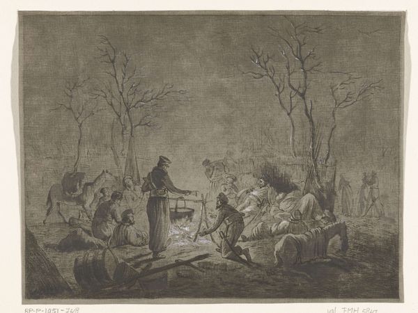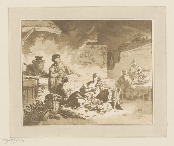 Editor: Here we have Felice Giani’s pen-and-ink drawing, “King David’s Sacrifice,” from around 1812. It definitely has a flair for the dramatic. I mean, just look at the sweeping gestures and the way the smoke billows! What do you see in this piece that I might be missing? Curator: Oh, darling, "missing" implies a treasure hunt, and with Giani, every glance is a find! Look closer at that chaos, Editor. See how Giani uses the drama of Romanticism not just for show, but to ask some probing questions. Have you ever considered the inherent conflict within sacrifice itself? We offer something, ostensibly to gain something greater. Editor: Hmmm… I guess it seems less straightforward when you put it like that. There’s that figure kneeling… David? Is he pleading, regretting, or just going through the motions? Curator: Exactly! That tension, that questioning, IS the essence of Romanticism. Giani isn’t just depicting a historical moment; he's exploring the human soul laid bare. That angel diving in adds to it. Divine intervention or another layer of emotional turmoil? It’s as if Giani whispers, "What do *you* believe?" Isn't it fabulous? Editor: I see what you mean. I was focusing on the style, but now I realize there’s this whole internal struggle visualized. I’ll definitely have to rethink my initial take on this drawing. Curator: Fabulous! Now, go forth and see the world not just as it is, but as it could be… or maybe *shouldn't* be!