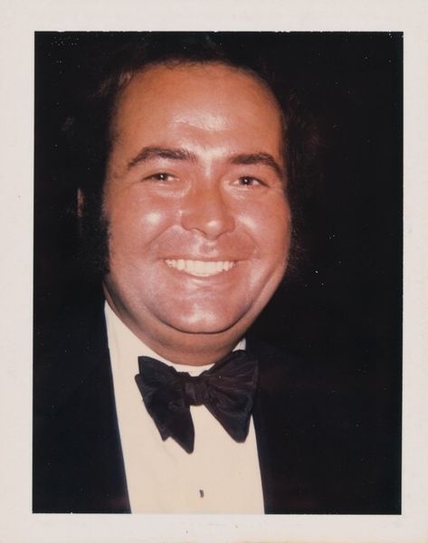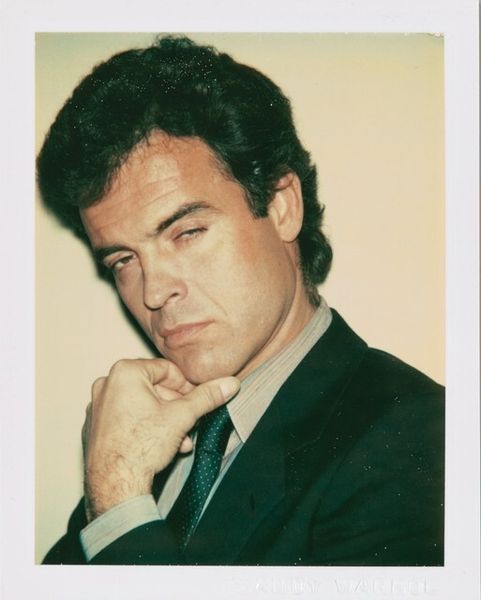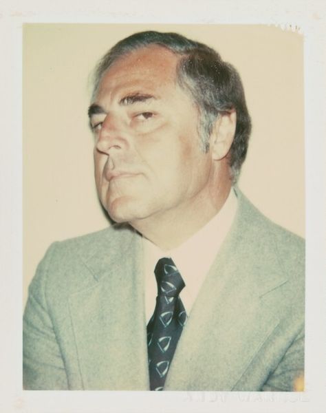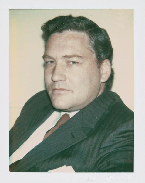 Curator: Here we have Andy Warhol's "Miles Fiterman," created in 1975. It’s a striking portrait, done in Warhol’s signature style. Editor: My first impression is thoughtfulness. The way he’s resting his chin on his hand gives a sense of introspection. Almost as if he's caught in a moment of deep contemplation. Curator: Warhol’s portraits often played with the idea of celebrity and identity. Fiterman, a businessman and philanthropist, perhaps commissioned this work. It makes you wonder what message he wanted to convey. The almost pastel color palette adds to the kind of softened gravity, no? Editor: Exactly, Warhol always blurred the lines, didn’t he? Commissioned or not, it's interesting how he takes someone not inherently known and presents them with this iconic aura. It’s that Warholian touch, making everyone feel a bit like a star, while holding the mirror up to aspiration and commerce in art, I mean look at how perfectly the grey tones harmonize from his suit to his hair; so measured in approach. Curator: Absolutely. And it speaks to how Warhol democratized portraiture. Before, it was often the realm of royalty or the elite, now someone like Fiterman gets the Warhol treatment. It highlights the changing social landscape and the role of art within it, becoming far less reliant on stuffy patronage to thrive in the public space. Editor: I always find Warhol's portraits intriguing. He manages to capture a surface likeness, sure, but also hints at something deeper, something slightly detached. Are we seeing the real Fiterman, or just the image he—or Warhol—wants us to see? It is something of a collaboration in how an image like this manifests; it's truly a cultural time capsule in many respects. Curator: And the fact that it is an accessible and reproducible format – a print – emphasizes Warhol’s engagement with mass culture. A far cry from the singular, precious portraits of centuries past. This redefines the accessibility to artistic representation in such a bold way, don't you think? Editor: Without a doubt. It invites a questioning of value, representation, and the very essence of celebrity and societal aspiration. Well, I think that's a new way to approach a portrait, considering how Andy seemed to deconstruct some long-held notions of celebrity, which makes works like these forever resonant.