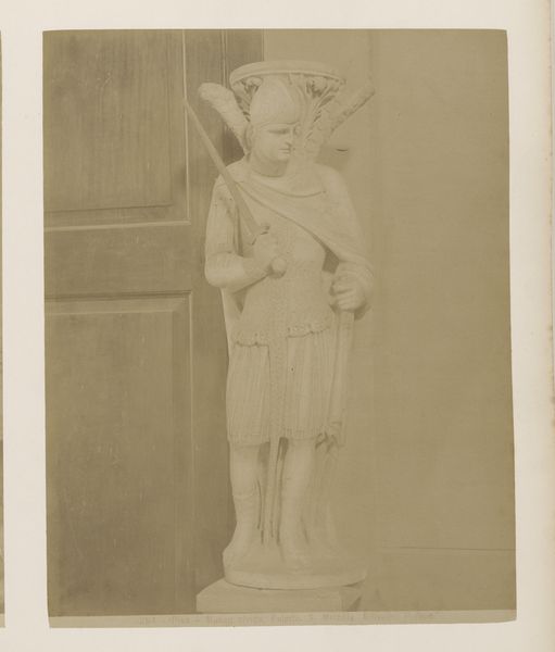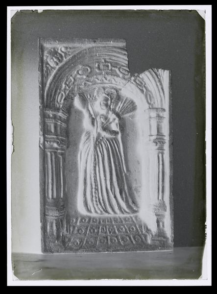 This photograph captures a sculpture of a woman with a child and horse at Huis ter Meer in Maarssen. It was made by an anonymous artist. The monochromatic palette and photographic medium give the sculpture a soft, diffused quality, almost as if it’s emerging from a dream. The way the light catches the folds of the woman's drapery is particularly striking. You can almost feel the weight and texture of the fabric. I keep coming back to the woman's gaze – or lack thereof. Her eyes are covered. This is such a strong formal element. What could it mean? Is she blind to the world, or does she possess a different kind of vision? It's this ambiguity that really draws me in. I’m reminded of the work of Man Ray, especially his surrealist photographs. Like Man Ray, this artist plays with light and shadow to create a sense of mystery and intrigue. Ultimately, this photograph is about the power of suggestion and the beauty of imperfection.