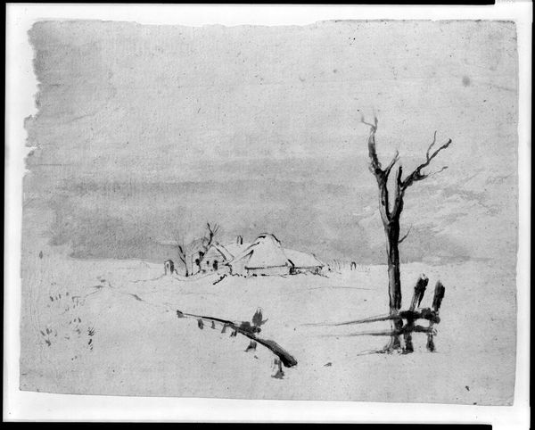 Curator: Immediately, I feel an overwhelming sense of quiet solitude. The stark landscape is almost ghostly. Editor: This is Ludwig Mestler's "The Loneliness of an American Winter," currently held at the Harvard Art Museums. Mestler, born in 1891, captures a raw, almost desolate scene. Curator: Those bare trees reaching skyward like skeletal fingers... they resonate with a primal fear of nature's indifference. Is it a universal symbol of vulnerability? Editor: Perhaps. Or maybe it reflects the specific anxieties of a rapidly industrializing America, where the natural world felt increasingly threatened and alienating. Mestler, though, seems to be drawing on a deeper well. Curator: I agree. The composition echoes traditional memento mori imagery, prompting reflection on mortality through the stark imagery of winter. Editor: It's a compelling interpretation. The piece certainly provokes thought about our place within both the natural world and history. Curator: Indeed. It's a potent reminder of the cyclical nature of life and the enduring power of symbols. Editor: A fitting end to our consideration of Mestler's evocative work.