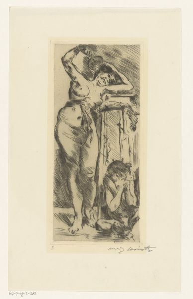 Pierre-Auguste Renoir rendered this sketch, Femme au Cep de Vigne, with ink on paper. The choice of a simple ink sketch, rather than fully realized painting, offers a glimpse into Renoir's creative process, revealing the raw essence of his artistic vision. The spontaneous nature of the ink lines, quickly capturing light and shadow, speaks to the Impressionist pursuit of capturing fleeting moments and the immediate sensations of light and form. The thinness of the ink, combined with the paper, evokes a sense of lightness and transience. The lack of detail emphasizes the gestural quality of the sketch. The figures and foliage appear as impressions, not as objects. The loose strokes seem to give life to the figures, which creates a dynamic energy. It's important to consider how this preliminary work, often unseen by the public, can reveal a deeper understanding of the artist's methods and concerns, bridging the gap between "high art" and the daily practice of craft.