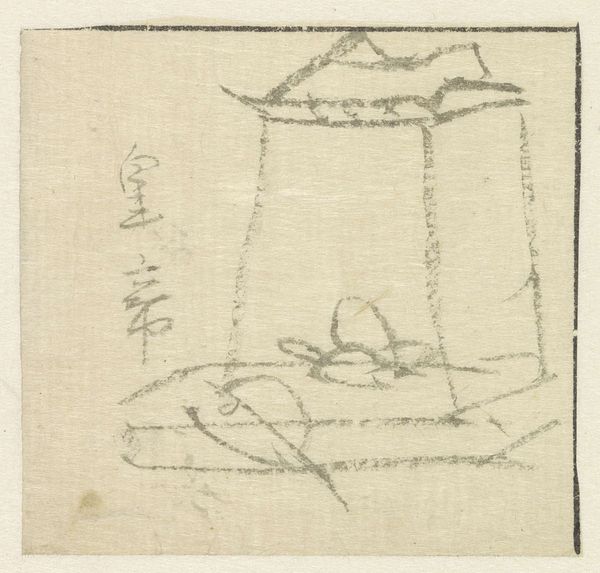 Editor: Here we have "Schetsblad met wapens en helm," or "Sketch sheet with weapons and helmet" by Utagawa Hiroshige, created sometime between 1807 and 1858. It's a pencil drawing currently held in the Rijksmuseum. My initial impression is of something fleeting, a moment captured in minimal lines. What do you make of its composition? Curator: The work offers an interesting interplay of form and suggestion. Note how the artist employs line not to define, but to imply volume and structure. The tentative nature of the strokes underscores the work’s status as a sketch. Do you observe a hierarchy within the composition? Editor: I see the helmet as being more clearly defined than the surrounding objects, making it a focal point, even though the entire drawing is quite sparse. What is the relationship between the helmet and the other undefined images? Curator: Observe the relationship of positive to negative space, the sketched versus un-sketched portions; also consider the use of line. There are clusters of dark marks creating almost solid shapes in places versus delicate and fleeting linear depiction elsewhere in the composition. How might these oppositions suggest meaning? Editor: Perhaps the incomplete renderings of surrounding weapons serve to heighten the significance of the helmet, implying an attention to detail and its prominence. Curator: Exactly. Consider, also, that the unfinished aspect could underscore a dynamism, the idea that the design is still in progress and capable of change. Editor: I had not considered that, seeing it as more of a deficit due to being unfinished, but it adds so much depth. I see that I initially perceived this work too literally, thinking that its merit rested solely on how accurately it represented something real rather than thinking about the formal properties of the artist's representation itself. Curator: Precisely. It's crucial to recognize the work's aesthetic decisions; the forms are rendered through line and composition instead of strict representative intentions. It's in the balance between representation and form that this piece yields new dimensions.