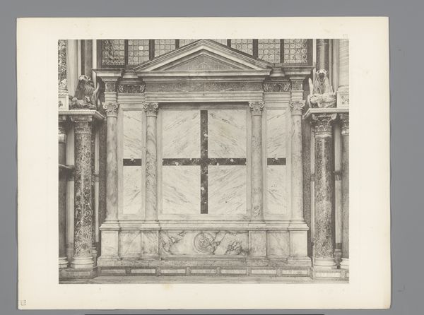 This photograph by Fratelli Alinari captures the grand marble monument of Pope Adrian VI, located in the Santa Maria dell’Anima church in Rome. As the only Dutch pope in history, Adrian VI's brief reign in the early 16th century occurred during the tumultuous years of the Reformation. The monument immortalizes him as a figure of piety and intellectualism. The sculpture is a study in contrasts, where the pope is depicted in repose above a relief showing him among scholars, and the figures of Justice, Prudence, Strength, and Temperance. The monument seeks to establish Adrian VI's legacy within a patriarchal and religious framework. He sought to reform the Catholic Church, but his efforts were met with resistance from within the institution. This monument then becomes not just a memorial, but also a statement of power. It reflects a complex moment in history when traditional authority was challenged, and new voices began to emerge. The monument invites us to reflect on how individuals are remembered, and how power is perpetuated through art.