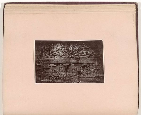 This photograph by C. Dietrich depicts a relief from Borobudur, a 9th-century Mahayana Buddhist temple in Central Java, Indonesia. Borobudur's reliefs are not simply decorative; they are didactic tools intended to instruct viewers in Buddhist teachings and moral principles. This particular relief likely illustrates stories from Buddhist scriptures, showing scenes of royal processions and assemblies of figures. The photograph itself, made during the colonial era, speaks to the institutional history of art. As European powers expanded their reach into Southeast Asia, photography became a means of documenting and studying the region's cultural heritage. The photograph creates a sense of ethnographic understanding, an institutional practice which is still in use today. To fully understand the cultural significance, scholars turn to textual sources, archaeological reports, and comparative studies of Buddhist art. The meaning of art is always contingent on social and institutional context.