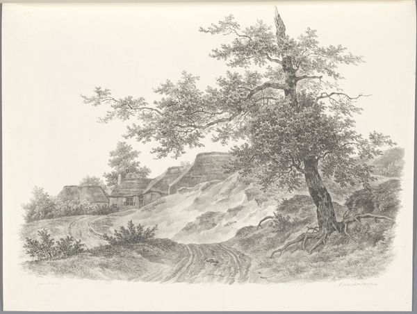 Editor: This is “Groep bomen in een heuvelachtig landschap,” or “Group of Trees in a Hilly Landscape,” a pencil drawing by Maurits van den Kerkhoff, from 1852. I'm struck by how detailed it is, especially given it’s just pencil. It's almost photographic in its realism, yet still feels… dreamy. What do you see in it? Curator: Initially, I see a masterclass in tonal range, skillfully executed in pencil. Notice how van den Kerkhoff modulates the grey scale to create depth and texture. The contrast between the dark, earthy foreground and the ethereal background produces a palpable sense of space, and light. How does the composition lead your eye through the artwork? Editor: Well, my eye definitely goes to the biggest tree first, almost in the center. And then kind of follows the slope of the hill down and to the right. It's a very gentle, curving path. Curator: Precisely. And consider the role of line in defining form. Observe the meticulous hatching and cross-hatching employed to render the volume and surface quality of the trees and the landscape. The artist uses a sophisticated language of marks to build form and simulate texture, doesn't he? Editor: Definitely. The tree bark looks so real, you could almost reach out and touch it! I hadn’t really thought about how much information you could convey with just pencil strokes. Curator: The intrinsic quality of mark-making, isn’t it fascinating? Consider, for instance, how van den Kerkhoff has captured the essence of nature using the most fundamental of artistic means. It really speaks to the timeless power of formal elements. What do you make of this insight? Editor: I see your point. It makes me appreciate the artist's technical skill even more, seeing how effectively he's used just pencil and paper to create something so immersive and beautiful. Thank you!