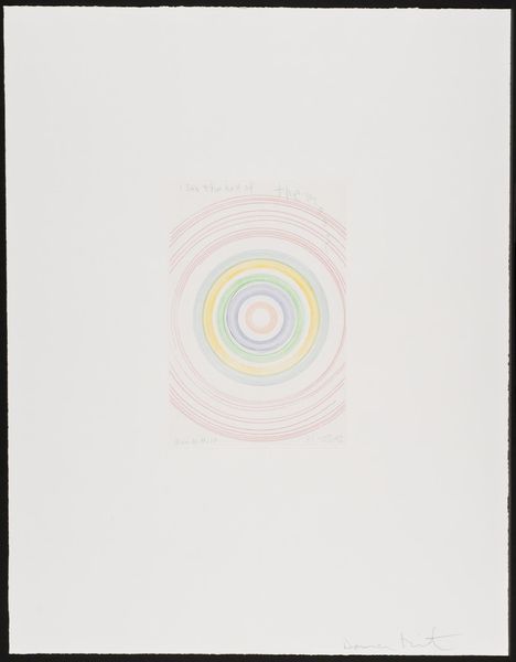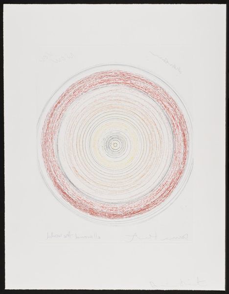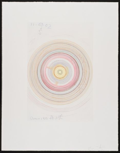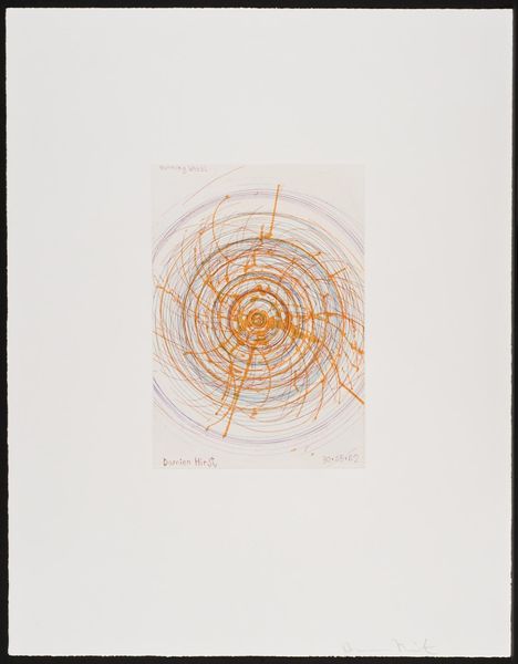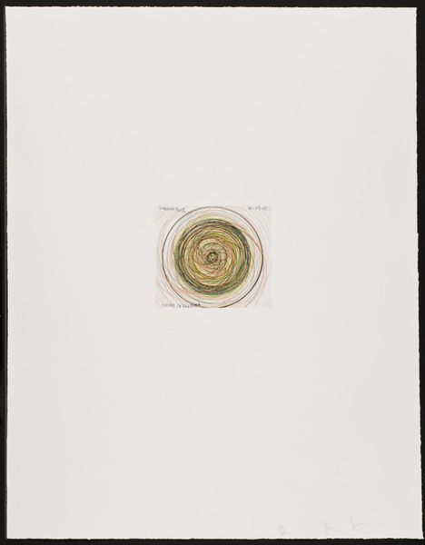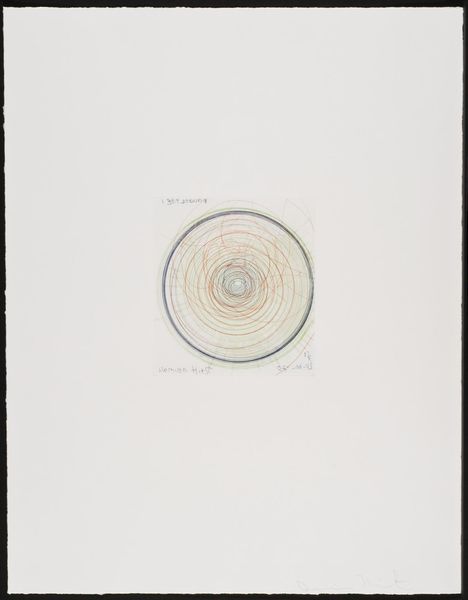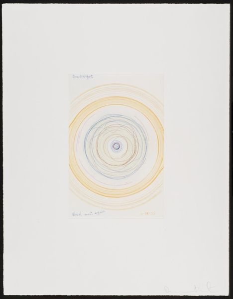 Editor: Here we have Louise Bourgeois's "Sublimation," a mixed-media drawing from 2002. It features these swirling shapes reminiscent of… well, spirals. What immediately strikes me is the contrast between the organic feel of the spirals and the stark, handwritten text. It’s like two separate thoughts occupying the same space. How do you interpret this work? Curator: For me, the spirals immediately evoke a sense of the internal. Bourgeois was so brilliant at externalizing the complex and often turbulent landscape of inner emotion. Imagine these spirals as two distinct wells, maybe representing love, or perhaps rage. "And suddenly there was a clash of voices," she writes... Do you hear that? Editor: I do. The handwritten element, placed away from the spirals, creates an unsettling sense of disconnection. I almost feel a discord. Are these two halves in conflict? Curator: Exactly! Bourgeois often explored the duality within herself, and within the human condition itself. These could be warring desires or contrasting aspects of her identity wrestling for control. Or maybe that voice—or those voices—is/are actually, ultimately, one. One longing so loud it became a clash. Don’t you think longing and voice are linked? What does it mean for an artist to put her own voice out in the world? Editor: It makes the drawing intensely personal. I’m getting a stronger sense of vulnerability and a very raw exposure of the artist’s interior world. It moves beyond simple abstraction. Curator: Indeed. It’s almost as if she is laying bare a psychological process right before us. And what does 'sublimation' even *mean*? Here, the term resonates: a transformation of base instincts into something higher, more refined, or even—with a heavy emphasis on 'even'—artistic? That sounds exhausting! Editor: (laughing) It really does. I’ll certainly need to spend more time thinking about that definition! But seeing the two sections communicating feels crucial now, with that context in mind. Thank you for drawing that out! Curator: The pleasure's mine. Art, in its best moments, is never "out there"… It lives only ever “in here.”