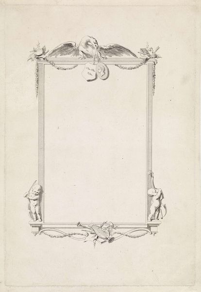 Johann Oktavian Salver rendered this design for a frame with ecclesiastical motifs using pen and black ink, likely in the mid-18th century. This wasn’t just doodling – it was a serious proposition for skilled craftsmen. Note the elaborate, swirling forms. It seems effortless, but achieving this level of detail requires countless hours of practice. Imagine these forms translated into carved wood or plaster. The frame, designed to surround a sacred image or text, would have become a testament to both religious devotion and skilled labor. Consider the social context. Salver’s design reflects the opulence of the Rococo period, catering to the Church and wealthy patrons. The frame is not just a border; it is an integral part of the artwork, and a signifier of power. By emphasizing the labor and materials involved, we recognize the true value of this design, challenging the notion that craft is somehow separate from art.