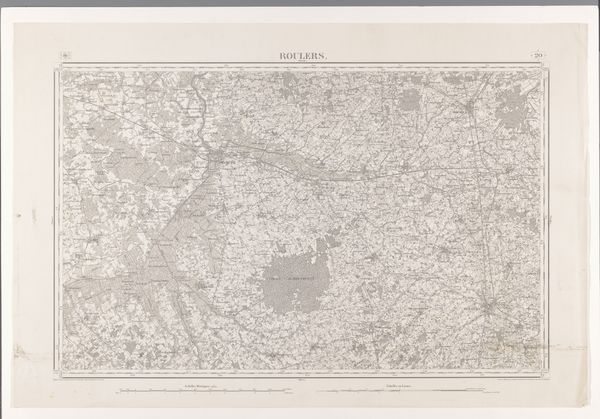 This is a detailed map of the area east of Bruges, created by various makers. The intricate network of lines and shapes forms a complex visual field, revealing the spatial organization of the landscape. The monochromatic palette emphasizes the geometric structure. The network of fine lines, create a semiotic system where each element encodes geographical information. The map constructs space through abstraction. Here, the city is represented as a web of infrastructure, suggesting an imposition of order on the natural landscape. This reflects how cartography not only represents space but also actively shapes our understanding of it. Note the tension between the precision of mapping and the ambiguities inherent in representing a dynamic, ever-changing world. This map invites us to consider how we perceive, organize, and ultimately, control the spaces we inhabit. Maps like this offer a lens through which to examine our relationship with the environment.
