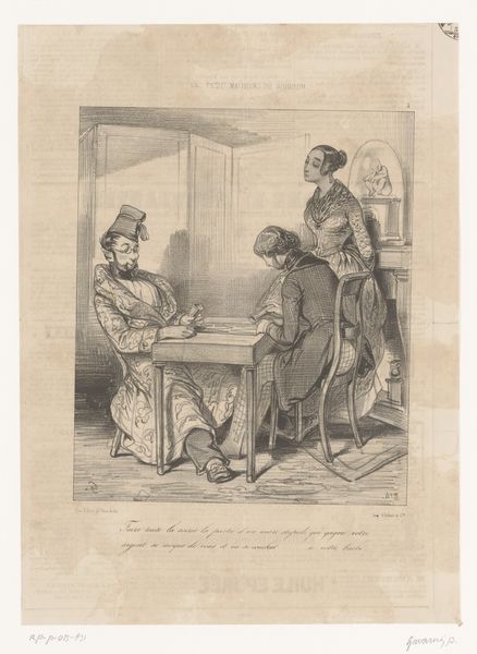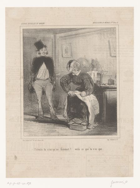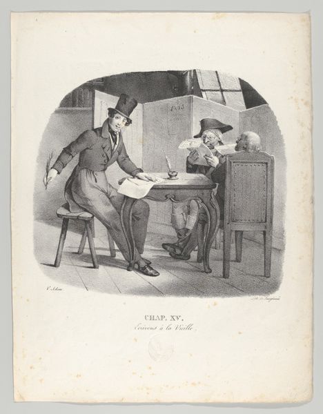 Victor Adam created this lithograph, "Chap. VIII: Comment Docteur!," capturing a scene laden with potent symbols of health and mortality. Observe the doctor's probing gesture, a stark reminder of our fragility. In the background, we find the skull—a memento mori—an ancient symbol urging us to remember our inevitable end. This symbol transcends cultures, appearing in Roman sarcophagi and Renaissance vanitas paintings. The doctor’s tools hint at attempts to control life's unpredictable course. His confident posture clashes with the patient’s anxious one, capturing the eternal struggle against disease and death. Such scenes tap into our collective anxieties, revealing the universal human experience with health, illness, and fear. This image, like others across time, is a poignant contemplation on mortality, continually resurfacing in art to remind us of our shared fate.