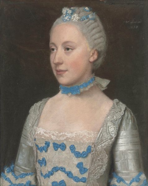 Curator: Here we have an intriguing portrait, identified as "Marie Josephe of Saxony," by Maurice Quentin de La Tour. The piece reflects a clear Rococo influence, though it’s unfortunately undated. Editor: Immediately, I’m drawn to the fabric. Look at the way the ruffles of her sleeves are articulated, the way the light interacts with that fine lace. You can almost feel the texture. Curator: Indeed, de la Tour really showcases his skill here. What strikes me is the painting's representation of aristocracy and status. Note her elaborate dress and the confident, yet reserved, expression on her face. This work certainly speaks to the social conventions surrounding royal portraiture in that era. Editor: I wonder, looking at those luxurious materials, what exactly went into the production? Where was that lace woven, who designed and sewed that elaborate gown? It’s so easy to get swept up in the elegance, but behind it lies a network of labor and consumption. The very pigment choices surely carry a socio-economic story too. Curator: A pertinent point! I believe these works served to reinforce power structures, portraying an image of wealth and divine right to rule. How else could the aristocracy legitimise itself? It’s no accident this kind of lavish detail was showcased. Editor: It’s fascinating to consider the actual process—mixing pigments, layering paint, each deliberate stroke to replicate the intricacies of fabric. De la Tour had a commission and was paid to spend this labor so that the monarchy would look appropriately impressive. It emphasizes art as *work*. Curator: Precisely. By presenting such elevated depictions, artists such as de la Tour played a crucial role in maintaining social hierarchies. They captured these moments in time in accordance with those very specific requirements. It served its sociopolitical purpose! Editor: Ultimately, the way this oil paint so skillfully represents fabric emphasizes the very human effort that produces everything, whether its the monarch's clothes or her portrait itself. Curator: Well, examining this piece in light of history certainly provides valuable insights into its context, and its broader historical narrative. Editor: And understanding its production, allows a deeper sense of its role within that context!