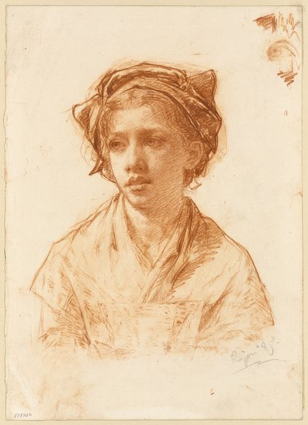 Curator: Allow me to introduce you to "Young Man in a Soft Cap," a compelling pencil drawing created by Guercino, dating roughly from 1630 to 1640. Editor: Immediately, the texture of the paper and the stark contrast of light and shadow give the drawing a sense of intimacy. It feels immediate, like a fleeting glimpse captured. Curator: That immediacy likely stems from the nature of the drawing medium itself. Pencil, readily available and easily transportable, was often used for preliminary sketches or studies. It democratizes the artistic process. The surface, and quality of the available graphite inform the aesthetic here. Editor: The way the lines coalesce to create form, particularly in the drapery of his clothing and the cap, is masterful. Guercino understood how to use line weight to suggest volume and depth, which also gives off a somber mood to it. Curator: Consider how the soft cap itself reflects the sitter's potential status or role. It speaks to sartorial conventions of the time, doesn't it? Who made that cap, who sold it, and what was it made of. That tells us a lot. Editor: And yet, his identity remains elusive, obscured by the angle and shading. The structure of the portrait—the tilted head, the averted gaze—suggests a certain pensiveness, drawing the eye into a very specific structural composition of darks and lights, which is itself full of nuance and intentional choices of artistic value. Curator: But how much of that "pensiveness" is a result of our contemporary projections? Perhaps for Guercino, this was merely a study in form and light, a way to master his craft. It is interesting what labor is shown and not shown. Where is the labor of those materials visible? Editor: That may be, but the formal elements suggest otherwise. The subtle gradations of tone, the delicate rendering of the features... It speaks of intentionality. Regardless of what else it might signify about the cultural milieu in which the drawing was made. Curator: Well, regardless, studying "Young Man in a Soft Cap" helps me to remember to reconsider everything! Editor: Yes. It’s given me a renewed appreciation for the fundamentals of line, light, and shadow.