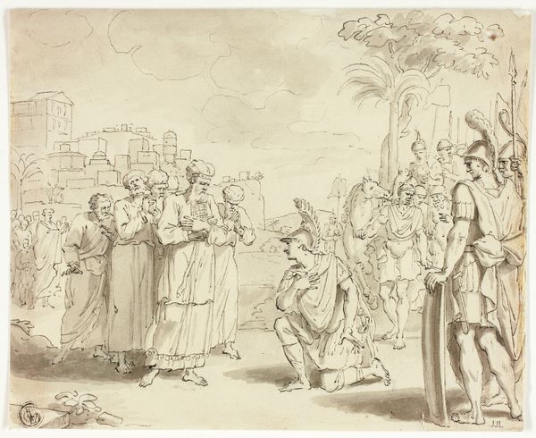 Francisco Goya's monumental oil on canvas, Blind Man's Buff, captivates with its dynamic energy and playful composition. The eye is immediately drawn to the swirling figures in the foreground, their bright costumes creating a vibrant contrast against the muted landscape. The circular arrangement of the figures, holding hands around the blindfolded player, forms a closed system. This shape suggests a game and a set of social rules, but also, perhaps, the enclosed world of the aristocracy. The tree acts as a vertical counterpoint, its bare branches echoing the figures' lively movements. Goya uses color to differentiate the classes. The light pastel shades and fashionable attire of the foreground figures contrast sharply with the darker, less defined masses of people in the background, separated by a line of water, which speaks to the social and political structures of the time. Note the subtle brushstrokes and use of light, which adds to the piece's dynamism. Ultimately, Goya's work is a reflection on the human condition. It uses art to challenge fixed meanings and engage with new ways of thinking about representation.