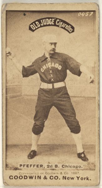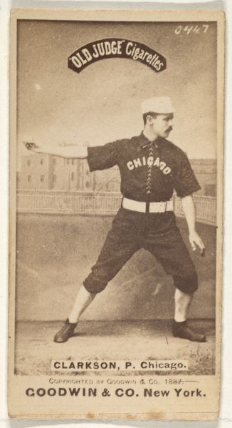 This card, featuring Clarkson the pitcher, was printed by Goodwin & Company of New York, around 1887, as part of a series inserted in packages of Old Judge Cigarettes. The card is a photograph, mounted on card stock. This technique allowed the company to mass-produce them cheaply, and the sepia tone gives it an antique look, fitting for a product like tobacco. While photography was regarded by some as an art, its use here as a promotional item firmly places it in the world of commercial ephemera. These cards were produced on a massive scale, churning out collectibles as a means to sell cigarettes. Consider the labor involved, from the tobacco fields to the darkrooms to the printing presses. It really makes you wonder about the relationship between leisure, labor, and the things we consume. It challenges our notions of fine art by pointing to the complex social and economic forces behind the creation of even the simplest image.