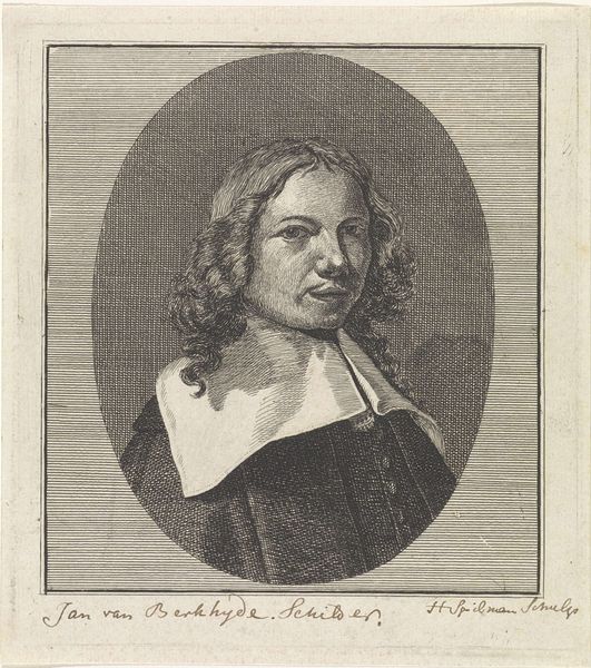 This is a portrait of Gerrit Adriaensz. Berckheyde, etched by the German artist known only as Monogrammist M. Here, the sitter's gaze meets ours, framed by cascading hair and a distinguished, wide collar. This collar, so prominent in the era's portraits, echoes across centuries, reminiscent of the ruffs worn by elites in earlier Renaissance paintings. It reappears time and again, a symbol of status and the weight of social expectations. The act of portraiture itself, like a ritual, taps into humanity’s deep-seated need to preserve memory and assert identity. In our collective psyche, such images serve as both a mirror and a mask, reflecting not only the sitter's likeness but also the values of their time. It's a powerful force that engages viewers on a subconscious level, reminding us of our own fleeting existence. Thus, the portrait endures, its symbols shifting, yet its essence—the desire to immortalize and understand ourselves—perpetually reborn.
