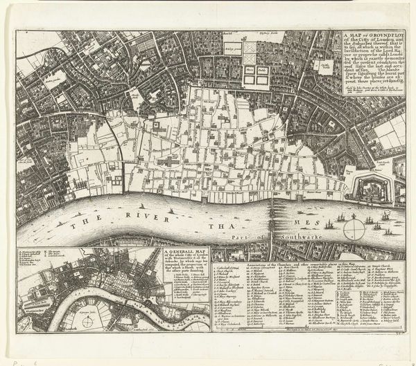 Curator: The crisp, almost clinical quality of the engraving in Giovanni Battista Falda's 1676 "Plattegrond van de stad Rome" is striking. Look at the precision in each line, the clear delineation of space. What's your initial read? Editor: An almost dizzying array of detail; it evokes both a sense of vastness and the methodical labor required to produce it. It feels imposing, like an architect's precise vision asserting order over chaotic urban growth. Curator: It is indeed an imposing feat, particularly considering its production. This engraving would have demanded the skillful labor of craftsmen—from Falda himself designing and etching the plate, to the papermakers providing the ground for his work, and the printing presses that multiplied and circulated the image. This piece is a confluence of numerous hands. Editor: Precisely. Observe how the urban sprawl is dissected by the river, dividing not just space but perhaps society as well. There’s a certain geometric formalism evident in the buildings themselves—notice the use of sharp angles. What about its structure speaks to you? Curator: Considering the patronage systems in place at the time, it is not surprising that we might read Falda’s piece as a promotional document; a tool used to showcase Rome, enticing investment and tourism, both integral to the economic lifeblood of the city. We mustn't divorce this object from the world that fostered it, no matter how striking it might be as an image. Editor: I find it quite intriguing how Falda achieves such a sense of depth using only lines, how he transforms a flat plane into a seemingly boundless space, playing with perspective and intricate detail to simulate spatial recession. The sheer level of mastery in controlling the medium is worth celebrating. Curator: A worthwhile point indeed. By understanding who commissioned these kinds of urban 'portraits' and for what purpose, we begin to unlock how the mechanics of power played into what images gained cultural relevance. Editor: It truly showcases the power of line and form to both document and, perhaps, even subtly idealize its subject. It has provided new insight to consider its detailed and well-crafted composition further. Curator: Yes, let's both acknowledge the labor involved in creation while remaining ever critical towards its social life, just one possibility in thinking about an object from the Italian Renaissance.