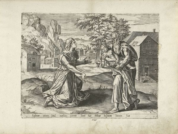 Curator: Domenico Ghirlandaio's "Stigmata of St. Francis," created around 1485 using oil paint and fresco, presents us with a visual narrative rich in both earthly and divine elements. Editor: My immediate impression is one of serenity tinged with suffering. The soft colors and the meticulously rendered landscape create a peaceful backdrop for such a profound, almost violent, spiritual event. Curator: Absolutely. Ghirlandaio’s material choices were likely quite deliberate. The fresco allowed for a monumental scale appropriate for its location—perhaps a church or chapel—demanding both visibility and longevity, whereas the integration of oil paint for detailing may point to a more nuanced, refined artistic statement meant to capture light and texture. Consider the social implications too; the commission itself signifies patronage and the values held within that sphere. Editor: And the symbolism! We see St. Francis receiving the stigmata—the wounds of Christ. This bestows an almost direct connection, making Francis a renewed Christ-figure. Look at the small figures emerging from the clouds, surely angels, they act as witnesses to this miraculous moment, reinforcing its divine validity. Curator: I wonder about the level of artistry invested versus the devotional aspect of the work? How does Ghirlandaio negotiate his labor with the spiritual intentions of his patron? And were assistants used? That’s a consideration, given the fresco technique's reliance on swift execution and teamwork. The earthly elements--landscape, animals, architecture—what role do they play in anchoring this divine encounter to a specific locale or patron ideology? Editor: Well, beyond locating the narrative geographically, the deer, the architecture, even the rendering of the landscape contribute to a specific cultural and moral context. Deer were, and continue to be, symbols for gentleness and devotion. Curator: Interesting! What about the color and application of pigment to represent textile—the robes, their material properties in a socio-economic context… how might they indicate St Francis' material status? Editor: The garments' subdued quality reflects the ascetic life embraced by Franciscans. Ultimately, for me, the image operates through this powerful synthesis of visual symbols that deepen our emotional, psychological, and spiritual connection to the central story. Curator: Seeing the choices in craft—materials, artistic labor, economic factors-- illuminates what was important when this fresco was commissioned, revealing the tangible factors and priorities that underpin its creation. Editor: Indeed. It's a fascinating dialogue between the divine and earthly concerns.