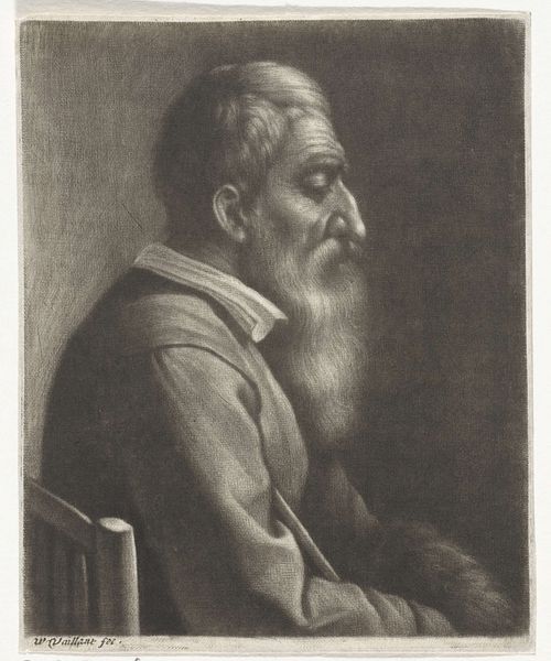 Curator: Anders Zorn painted this portrait of Joseph Randolph Coolidge in 1899. Look at the thoughtful pose, the man is resting his face on his hand. Editor: I’m struck by the somber mood. The limited palette and indistinct background make the portrait feel intimate, almost melancholic. Curator: Zorn was a master of capturing the character of his sitters, often from positions of power and influence, like Coolidge, a prominent Bostonian. How do you think the portrait reflects that? Editor: His gaze seems to acknowledge the weight of responsibility, the pose suggesting both contemplation and perhaps a weariness associated with his position. The composition really lends itself to that reading. Curator: Absolutely. And I'm curious, what does Coolidge's expression say about societal expectations surrounding masculinity and leadership during that era? Editor: It raises questions about the emotional lives of men in positions of power, and how art can both reflect and subvert those expectations. Curator: It is fascinating how Zorn captured Coolidge and I appreciate how this image continues to spark contemporary dialogues on identity and power. Editor: Indeed. It's a reminder of art's enduring ability to prompt introspection about ourselves.