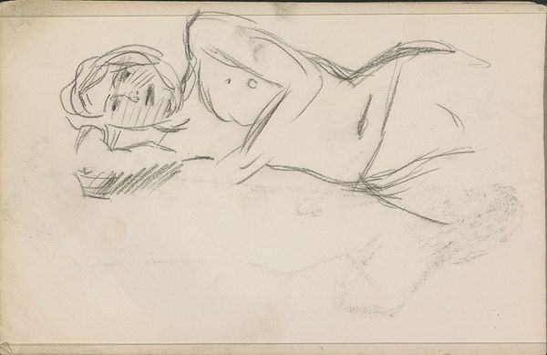 Isaac Israels created this sketch, "Sleeping Woman with Bare Torso," with a pencil on paper. Israels was working in a time when the female body was often idealized, represented through a male lens. Here, the woman's vulnerability is palpable; her posture suggests a deep, unbothered sleep. There is a refreshing lack of pretense, a stark contrast to the carefully constructed images prevalent in his time. Israels was known for his keen observation and empathetic portrayal of his subjects. His work often featured women from diverse social backgrounds, each rendered with dignity and respect. This sketch captures a moment of intimacy and rest, inviting us to consider the complexities of female representation in art. Instead of conforming to traditional artistic conventions, it gives us a space to contemplate the quiet beauty of the female form. It challenges us to appreciate the inherent value and humanity of the individual.