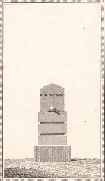 Editor: This is "Skiold," a print by J.F. Clemens, dating from around 1779 to 1781. It’s made using etching and engraving techniques. It seems quite austere. What do you see in this piece? Curator: I see a potent example of how printed images helped circulate and solidify specific ideologies. Consider the material process: etching and engraving were labor-intensive methods. This piece elevates a single monument, likely imbued with nationalistic significance given the period and the very direct, unadorned titular reference, almost literally *written* into the print, emphasizing the importance of this "Skiold". It transforms a potentially controversial physical object into something reproducible and therefore more easily disseminated as propaganda. Editor: So, you’re saying the *act* of making a print like this, the labour and reproducibility, it's crucial to its meaning? Curator: Precisely. Think about the paper itself, its production, its availability. This isn’t a unique painting accessible only to the elite; it’s designed for wider distribution, shaping public perception by creating a more generalized and shared idea, a collective association between this memorial and some kind of unified past, that is necessarily ideological. It also elevates printmaking as a legitimate and therefore socially valuable art form. Who benefits from the circulation of such imagery? What socio-political stories are privileged through this form of representation, over others? Editor: It’s fascinating to think about the print itself as a tool, almost like a means of production in spreading the message. It really makes me reconsider the intent behind what seems, on the surface, to be just a simple image. Curator: Indeed, examining the material conditions and modes of production reveals layers of meaning often overlooked. It prompts us to question the power dynamics embedded within even the most seemingly straightforward image. Editor: I will definitely consider the socio-political environment and production processes when analyzing artworks from now on. Thank you!