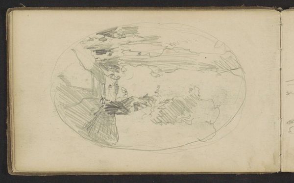 Editor: Here we have Willem Cornelis Rip’s “Landschap” from 1892, rendered with watercolor and ink on what appears to be aged paper. It's delicate and ephemeral, like a fleeting memory. What draws your eye to this particular sketch? Curator: I’m immediately drawn to the accessibility of this landscape. Consider the labor involved in its production. Rip wasn't creating a monumental oil painting destined for a salon. This is a sketch, born from readily available materials – paper, pencil, maybe some watercolor. The lack of preciousness suggests a different intention, perhaps a direct engagement with the landscape and the sheer act of making, a raw recording of experience rather than a carefully constructed "art" object. Editor: That’s interesting. So you see the materials as being quite important to the purpose of the work? Curator: Absolutely! It bypasses the hierarchy of materials that traditionally elevates painting and sculpture. This challenges those established norms. The immediacy of the sketch reveals a directness absent in more labored, 'finished' works, suggesting a critique, albeit subtle, of conventional art production methods and distribution networks of the period. This suggests a rejection of those conventions, prioritizing direct, personal engagement with the subject matter. How else can we interpret this emphasis? Editor: Perhaps he couldn't afford high-end materials, or perhaps he thought they were superfluous to capture the scene... I hadn't considered how subversive simple materials could be! Curator: Precisely. Its lack of refinement highlights process over product and places it outside the typical commercial structures of art, creating new modes for visual expression by challenging the status quo. Editor: This conversation has truly shifted my perspective; what first seemed like a simple sketch now speaks volumes about art and society in that period!