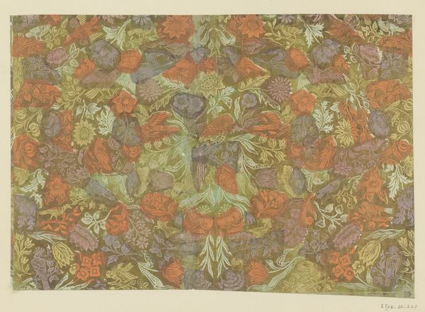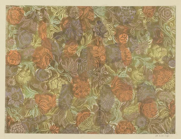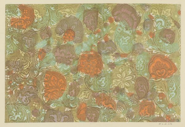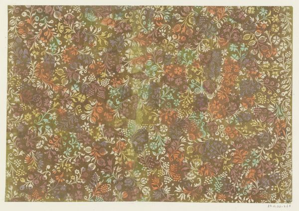 Editor: So, this is "Blad met bloemen en vruchten," or "Sheet with flowers and fruits," made sometime between 1720 and 1750, and it’s an ink drawing on paper. It really strikes me as more decorative than anything, almost like wallpaper. What do you see in it? Curator: Wallpaper, eh? Well, it's interesting you say that, because while it’s definitely got that baroque decorative vibe, I think it’s less about filling a space and more about contemplating nature. The density of the pattern almost forces your eye to slow down, like trying to decipher a secret botanical code. Editor: A secret code? Curator: Precisely! Each flower, each fruit rendered with this incredible detail. Look at the way the ink captures the texture, and then consider this isn’t just any random arrangement. It’s deliberately composed. Almost like the artist wasn't just drawing pretty things, but trying to grasp the deeper order behind all the floral chaos. What feelings does it evoke for you? Editor: I guess I see that now. I was so caught up in the pattern, but slowing down… there's almost a melancholy to it. Like a captured moment, these flowers preserved in ink before they wilt. Curator: That's it! That sense of fleeting beauty, of wanting to hold onto something ephemeral...That melancholic observation speaks to the essence of Baroque art—capturing not just the splendor, but also the awareness of time's passage and inevitable decay. Do you think our fast-paced lives allow us to really see these intricacies? Editor: Not really, I didn't before, anyway. But it’s definitely changed how I’ll look at this piece now. Curator: It certainly does that to you, doesn't it? Each glance will tell a different story!
