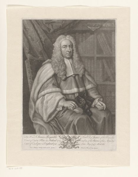 This aquatint of Sir Richard Perryn was created by Gainsborough Dupont in 1779, and is now housed at the Art Institute of Chicago. The composition immediately draws us to the figure’s face, framed by a voluminous wig, directing our gaze along a vertical axis through the subject’s body. Dupont skillfully employs the aquatint technique to create a range of tonal variations, suggesting the textures of fur and fabric with remarkable verisimilitude. Look at how the light catches the edges of the wig and robe, creating a dynamic interplay between light and shadow. The portrait operates within a semiotic system of signs, the wig and robe function as symbols of authority, instantly communicating the sitter’s social and professional status. By focusing on the formal qualities of the portrait, we come to understand how Dupont's artistic choices contribute to the construction of meaning and the reinforcement of social hierarchies. Consider how the texture and form work together to communicate power, authority, and status in late eighteenth-century Britain.